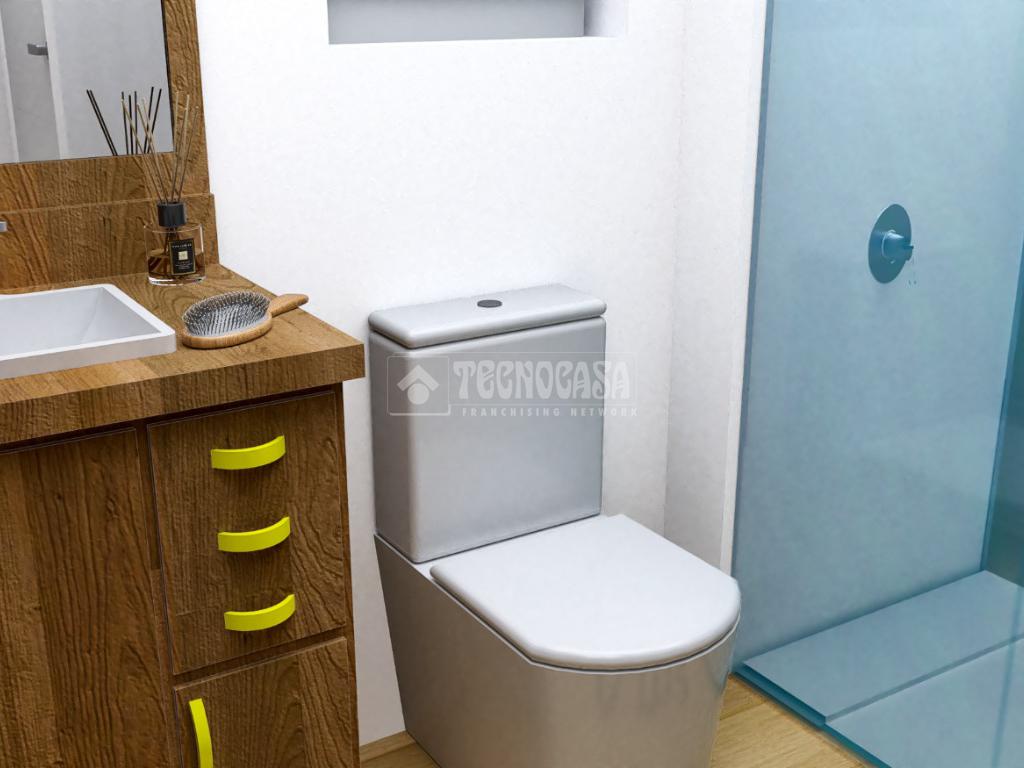 sanitarios en blanco con tapa de caída amortiguada y grifería monomando. El